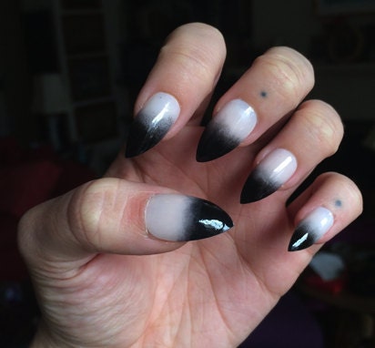 Gothic Stiletto Ghostly Nails Halloween Black To White Etsy